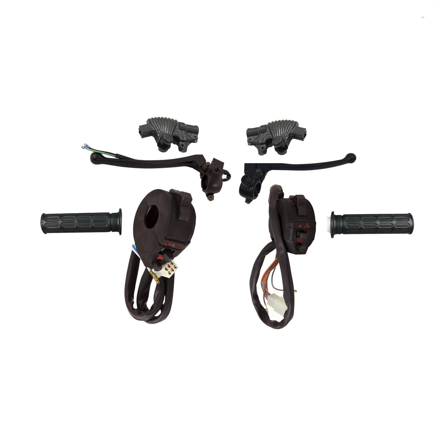 ست کامل قلوه شامل : 1.قلوه کلید استارت کامل 2.قلوه کلید بوق کامل 3.قلوه کت ترمز کامل 4.قلوه کت کلاچ کامل 5.لاستیک های دسته فرمان گاز و کلاچ 6.گردگیر های کتی ترمز و کلاچ